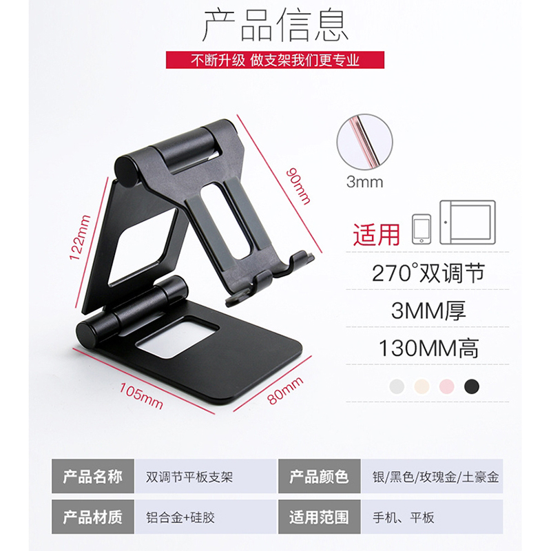 Aluminum alloy mobile phone holder folding portable lazy base tablet computer universal live TV viewing adjustment clip