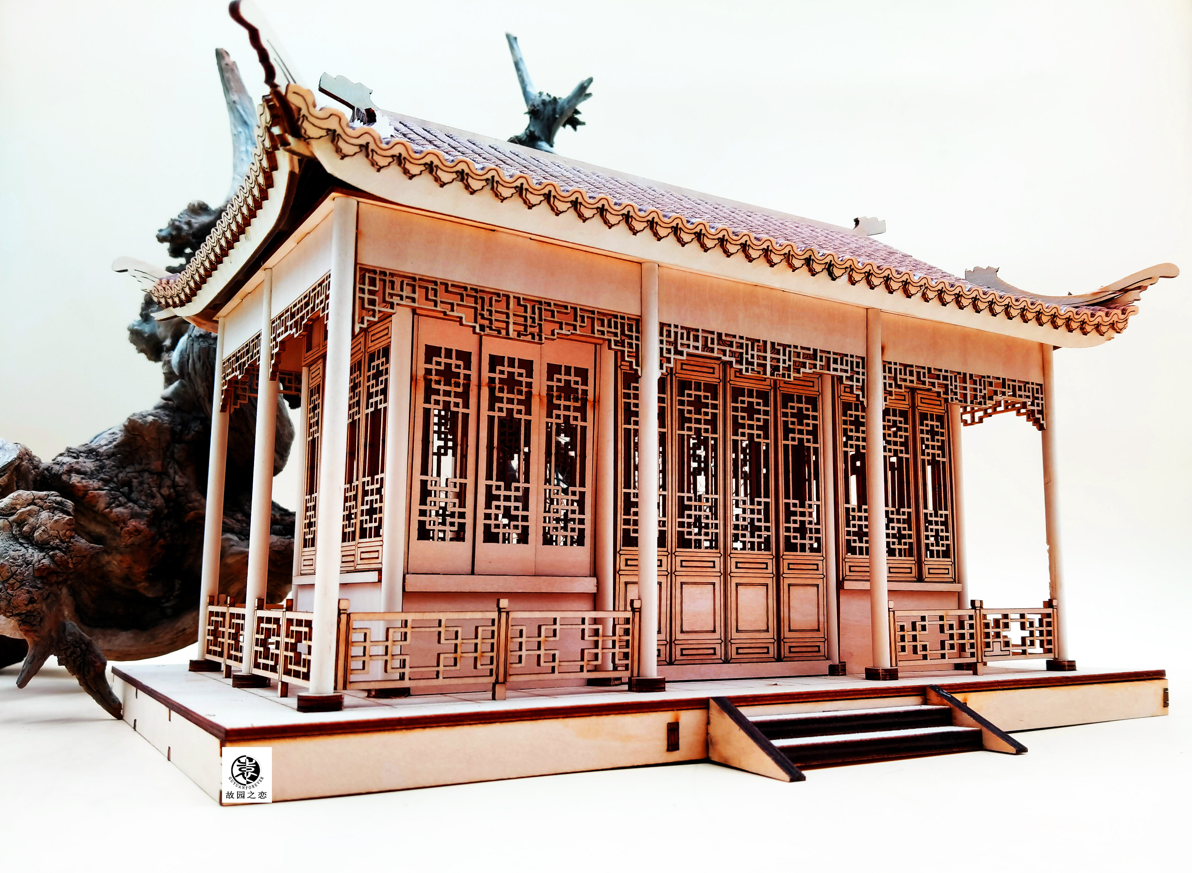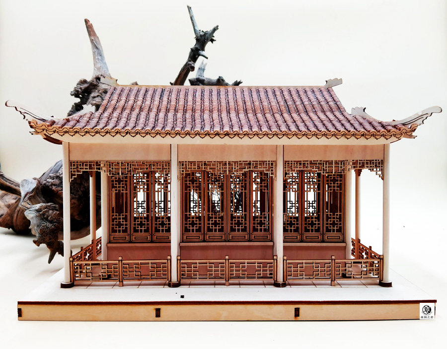 Chinese style meditation ancient building assembly diy wooden semi-tenon and mortise assembly listening to rain xuan model craft gift pendulum piece