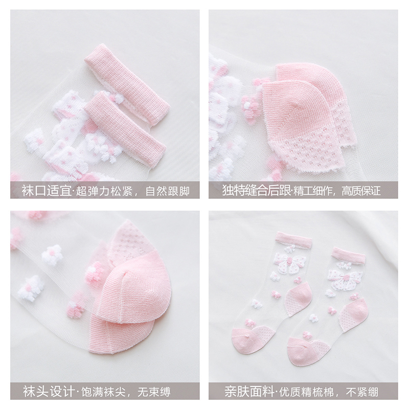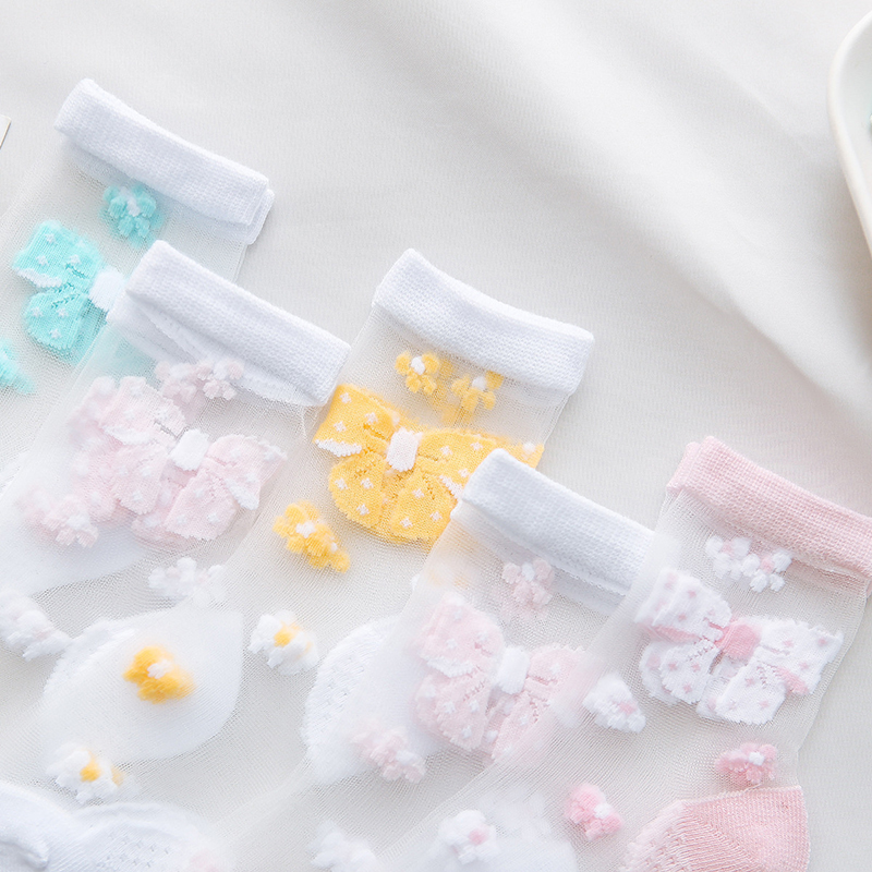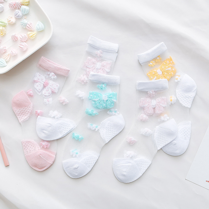 Bowknot style (5 pairs) Mixed color lace socks (5 pairs) Pure white lace socks (5 pairs) Strawberry style (5 pairs) Love style (5 pairs) Bunny crystal socks (5 pairs)