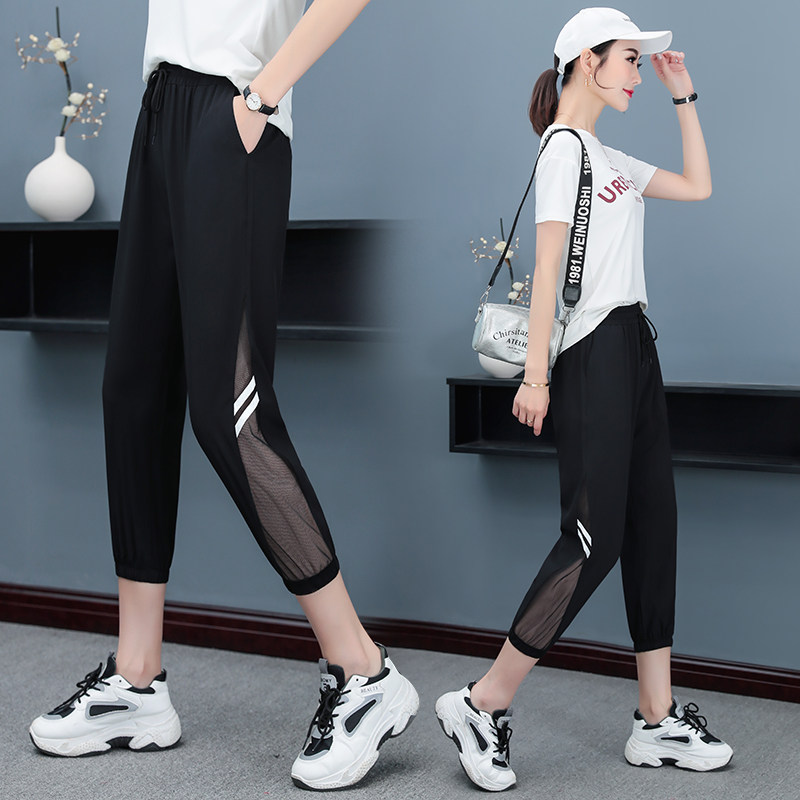Mesh ice silk sweatpants women's thin cropped pants summer small casual pants all-match loose harem pants nine-point pants