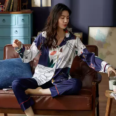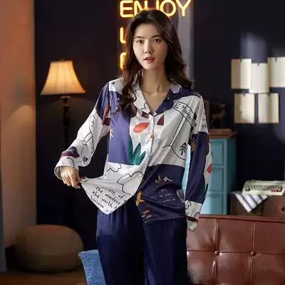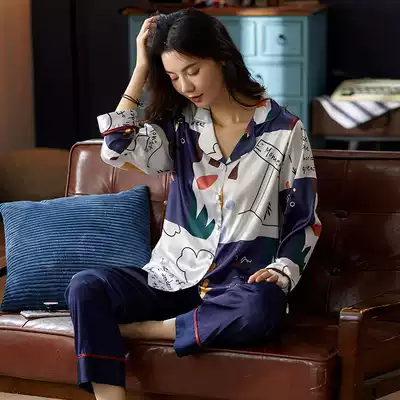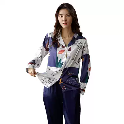 Antarctic pajamas female spring and autumn Ice Silk thin long sleeve home clothing simulation silk Korean casual summer two-piece set