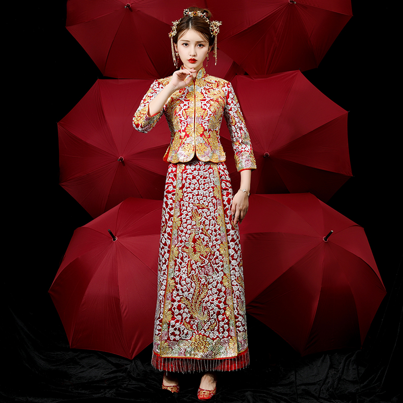 Out Rental 2022 Spring Summer New Qipao Toast to Wedding Dress Dragon Crested Female Midstyle Wedding Gown Show and Conqueror