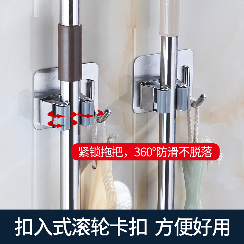 Stainless steel clothes hook-clamp sweep to remove the mop-holder powerful stick-stick mop hanger-free wall-mounted wall-mounted dressing room