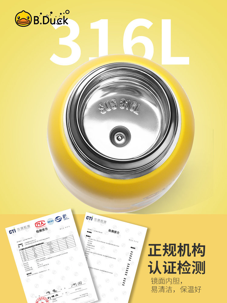 BDuck Little Yellow Duck Child Insulation Cup Stroke Stainless Steel Direct Drinking Cup Preparatory Kindergarten Primary Kettle
