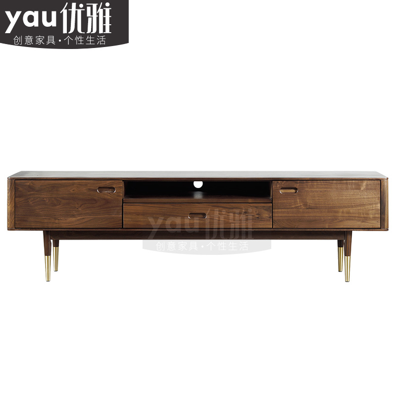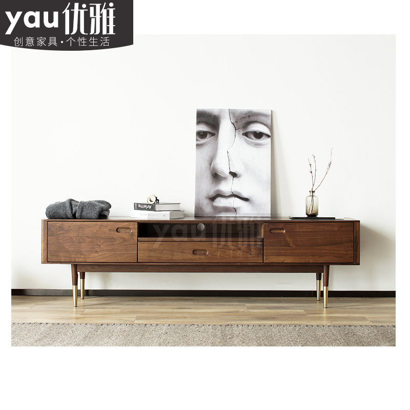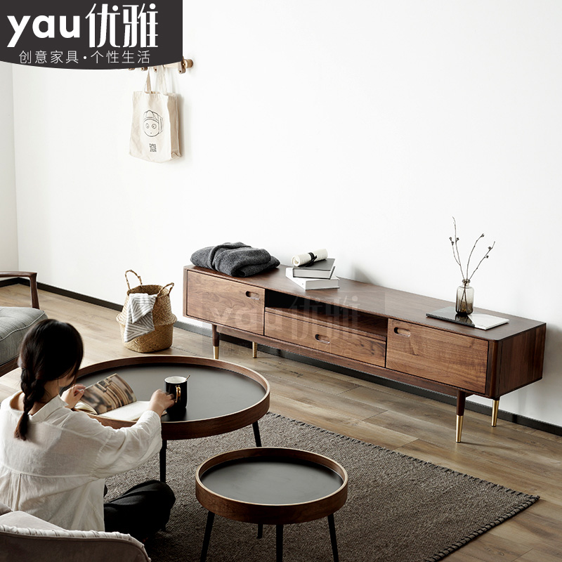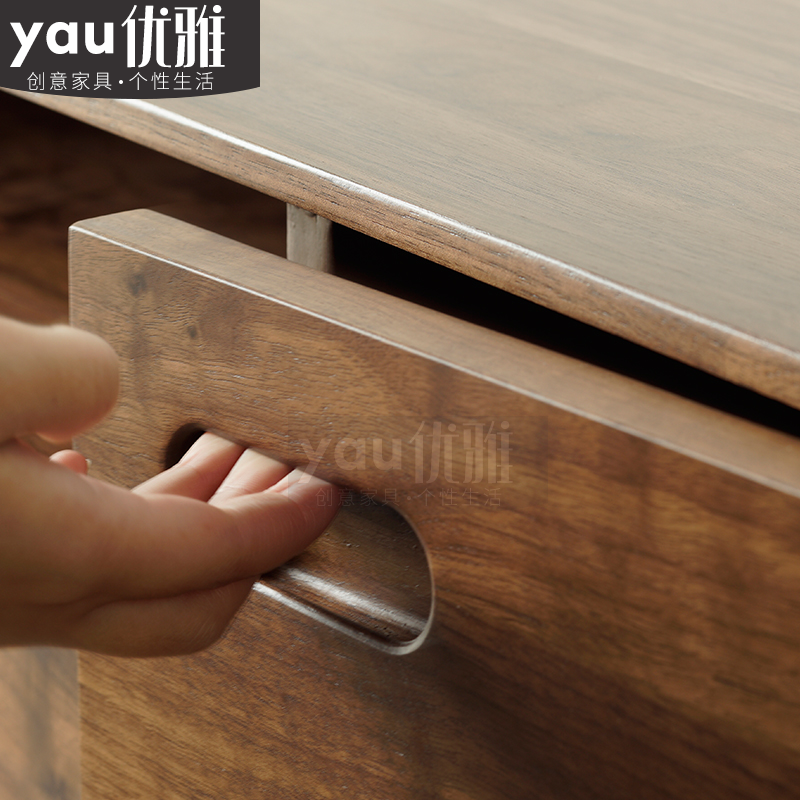 Nordic style all solid wood TV cabinet black walnut modern minimalist furniture light luxury bedroom living room small apartment floor cabinet