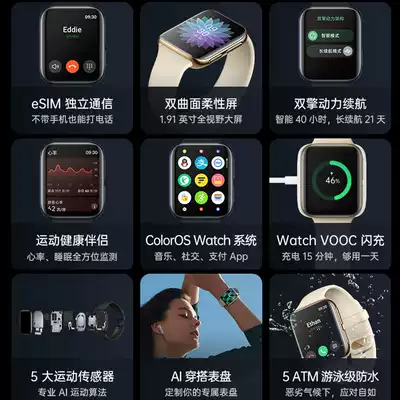 oppo watch Watch Palace Museum New Year Edition Blood oxygen heart rate Sleep monitoring eSIM independent communication Hyperboloid flexible screen Dual engine battery life Strong battery life Smart watch bracelet Sports call