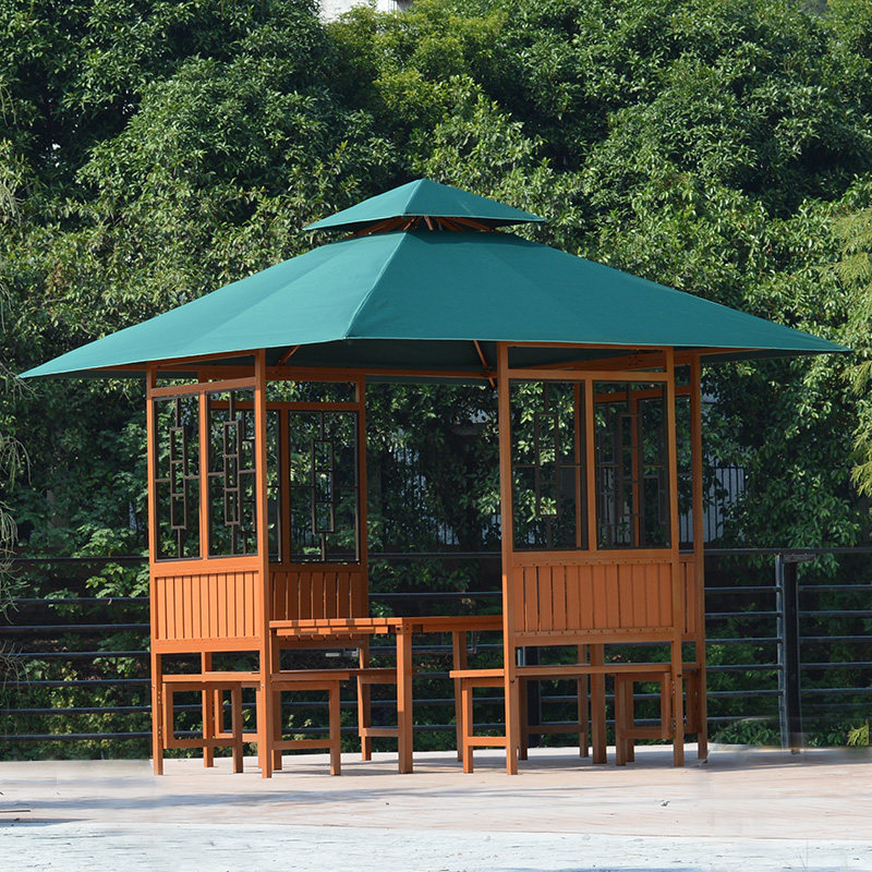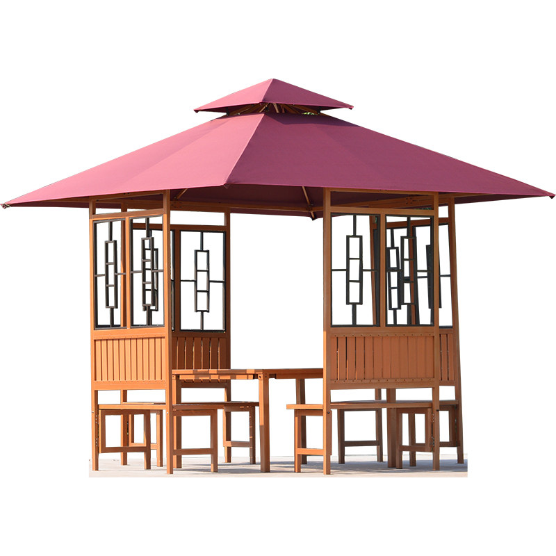 Chinese pavilion (top color optional) four-post pavilion (two-sided seat) imitation wood-colored four-post pavilion (three-sided seat) imitation wood-colored four-post pavilion (three-sided seat 150 long table)