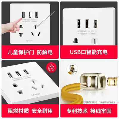 Bull Ming five-hole socket with usb switch open wire box two or three plug wall charging panel household G12 White