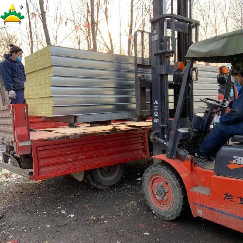 Shandong Xinrui manufacturer color steel rock wool board 120 thick high temperature assembly line special rock wool insulation board support customization