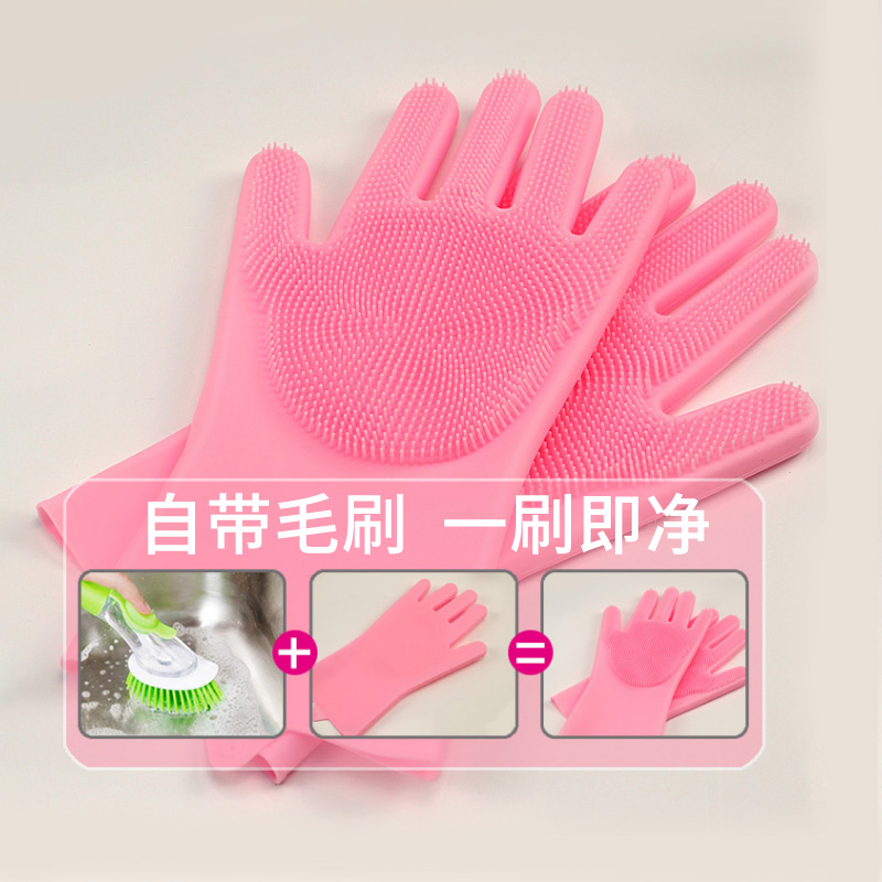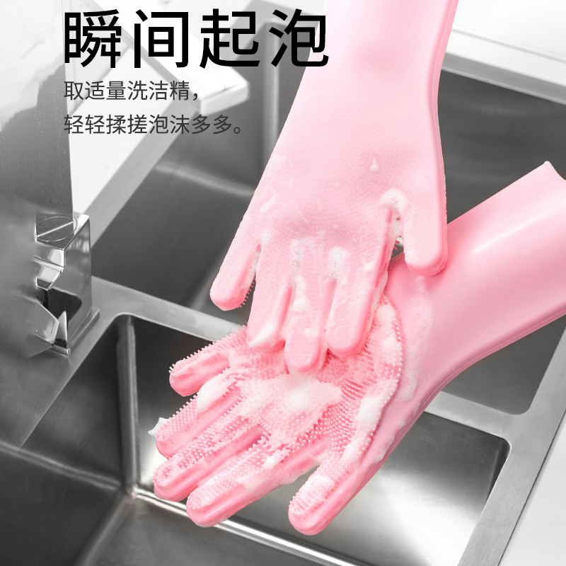 Silicone Dishwashing Gloves Women's Kitchen Laundry God's Home Water Waterproof Lengthened Gushed Home Brush Bowls Durable