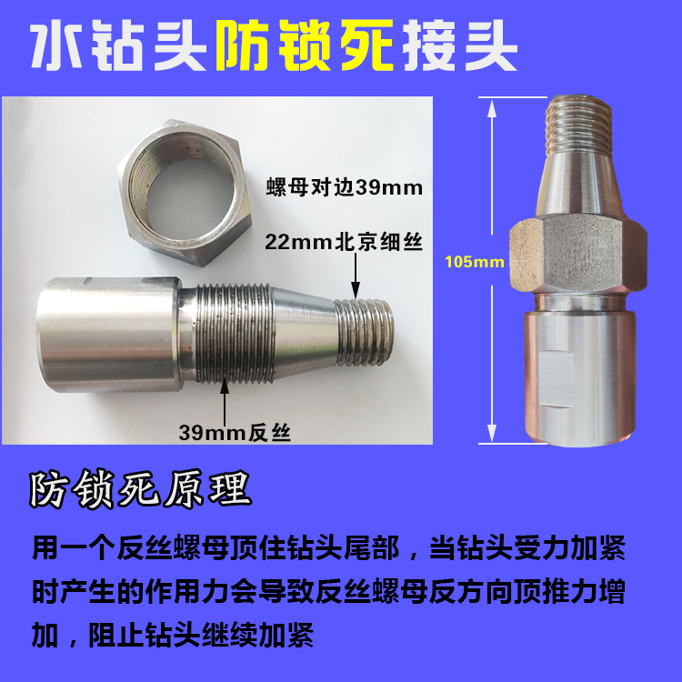 Hole opener anti-lock threaded spindle joint Concrete drill hard-to-remove anti-lock drill adapter