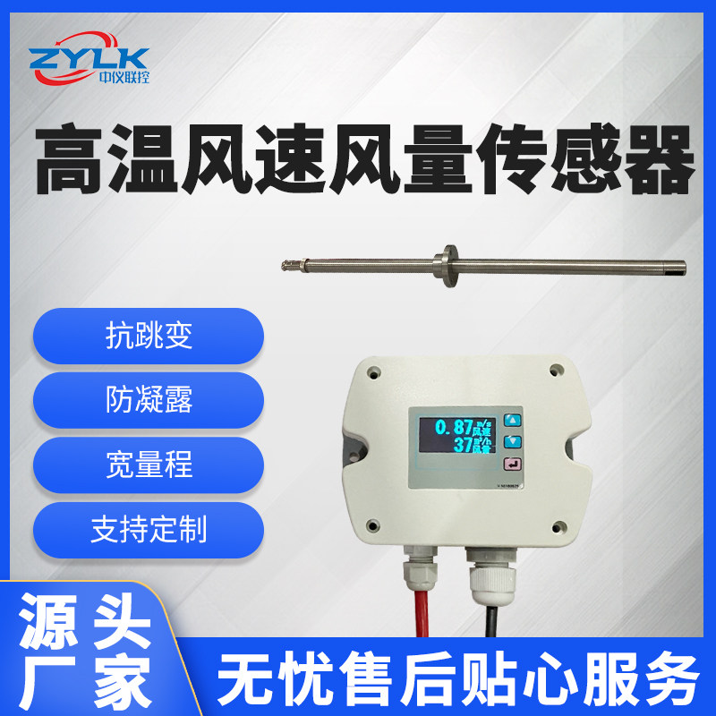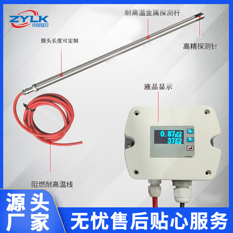 High temperature resistant dust pipe wind speed air volume sensor heat high liquid crystal display RS4854-20MA output