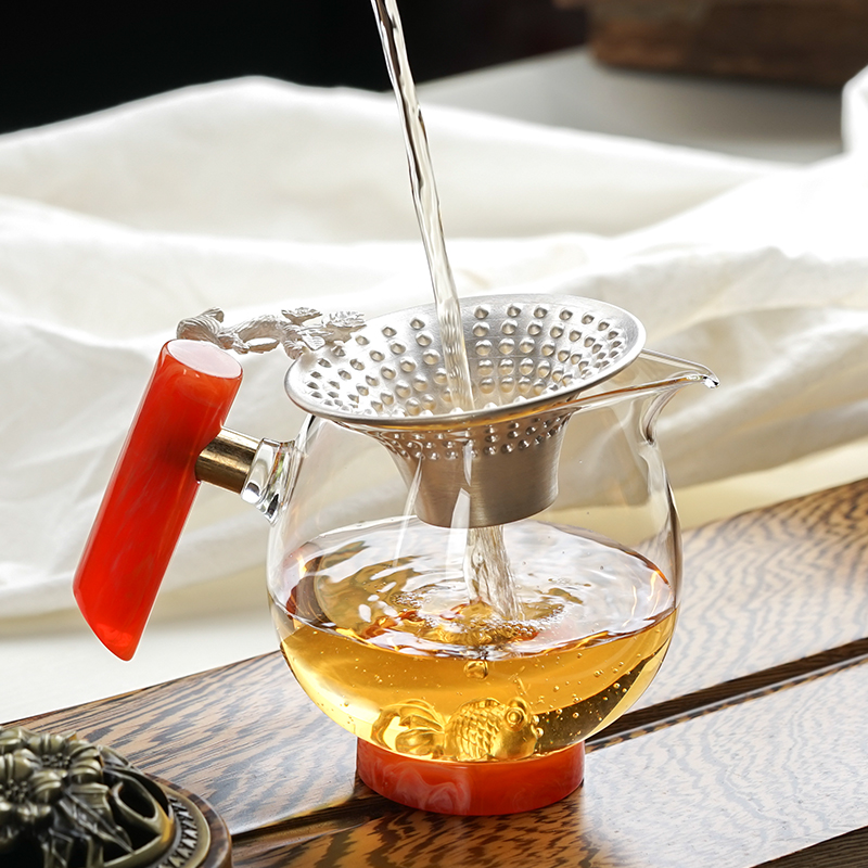 3D silver glass fair cup heat-resistant tea sea creative inlaid silver flower male cup tea dispenser set kung fu tea set tea pourer