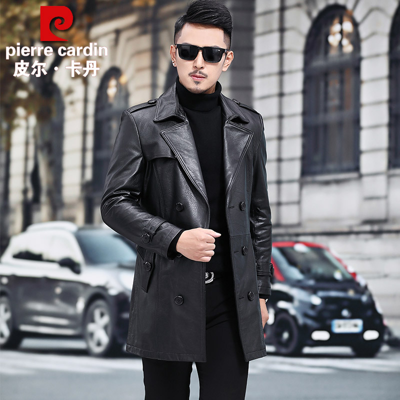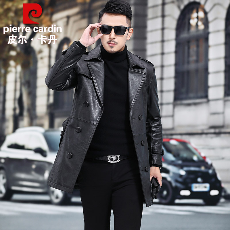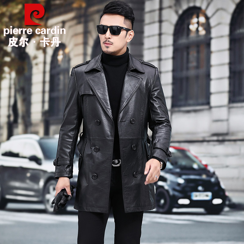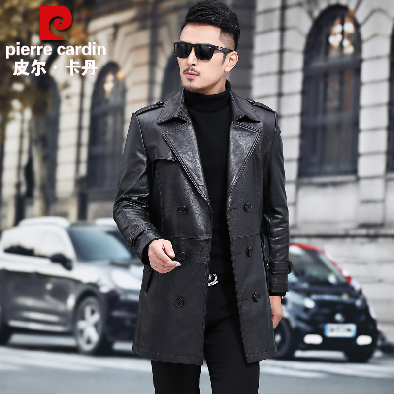 Pilkardon genuine leather leather clothes men's head layer of cow leather jacket with long version of cow leather jacket suit collar large size windsuit