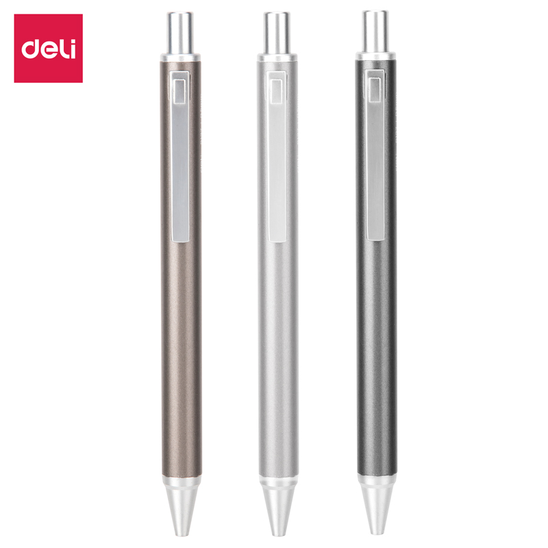 Deli gel pen 0 5mm bullet metal texture simple business high-grade orb pen black office signature pen Press type water-based pen Gel pen college signature water-based ballpoint pen black pen