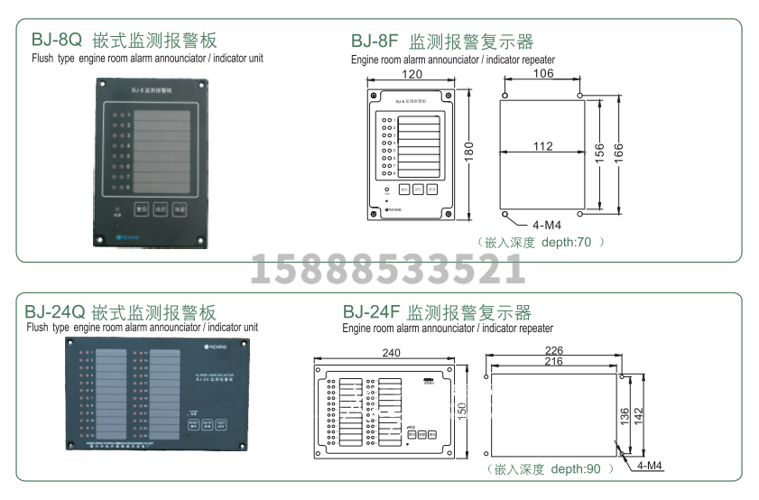 Fucheng marine monitoring alarm board BJ-8 16 24 32Q G F monitoring repeater embedded wall-mounted