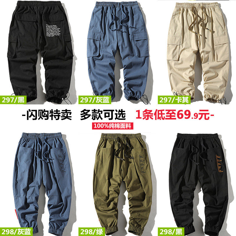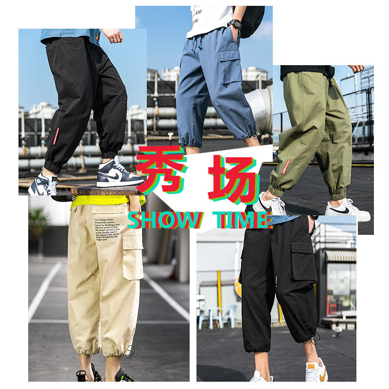 Feet overalls men's fashion brand spring and summer cotton students loose men's shorts nine points and seven casual pants Hong Kong style