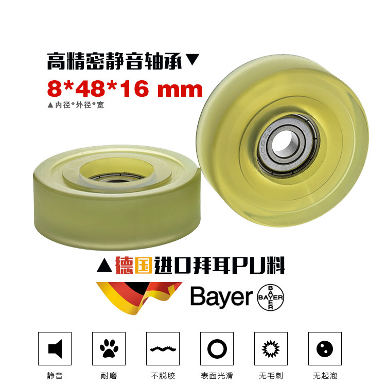 PU polyurethane flat wheel roller diameter 48 width 16 automation mechanical silence soft rubber roller wheel wear 8*48*16