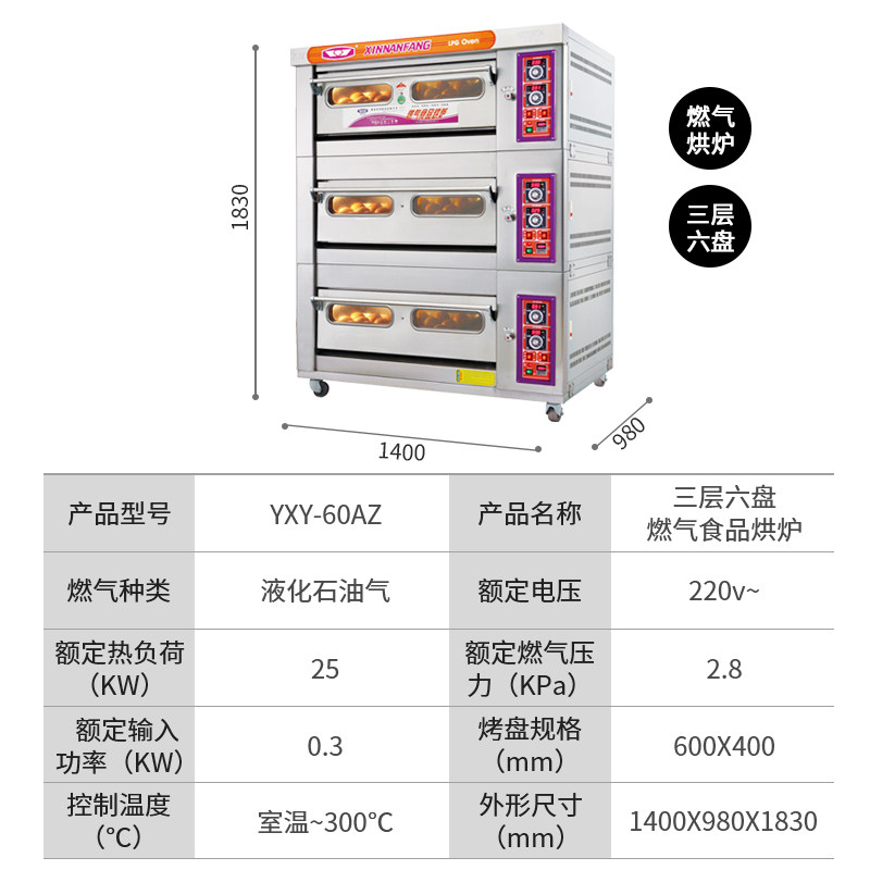New South YXY - 60AZ gas oven large commercial dismantling can be layered three - layer six - plate oven gas oven