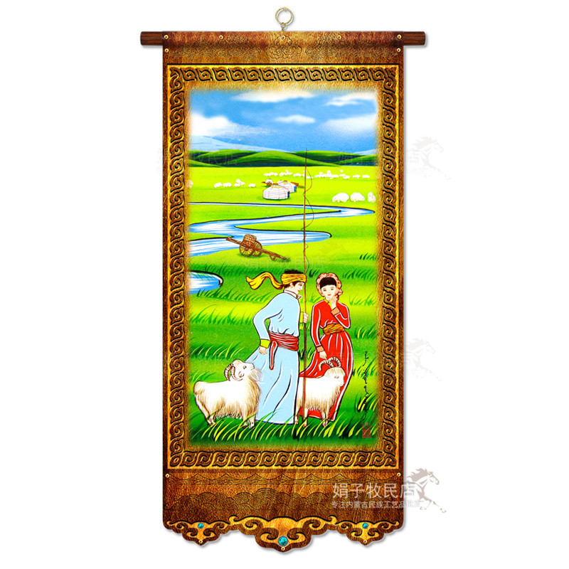 Mongolian element leather painting ethnic style characteristic decorative painting Mongolian dining room Mongolian yurt furniture accessories tourist souvenirs