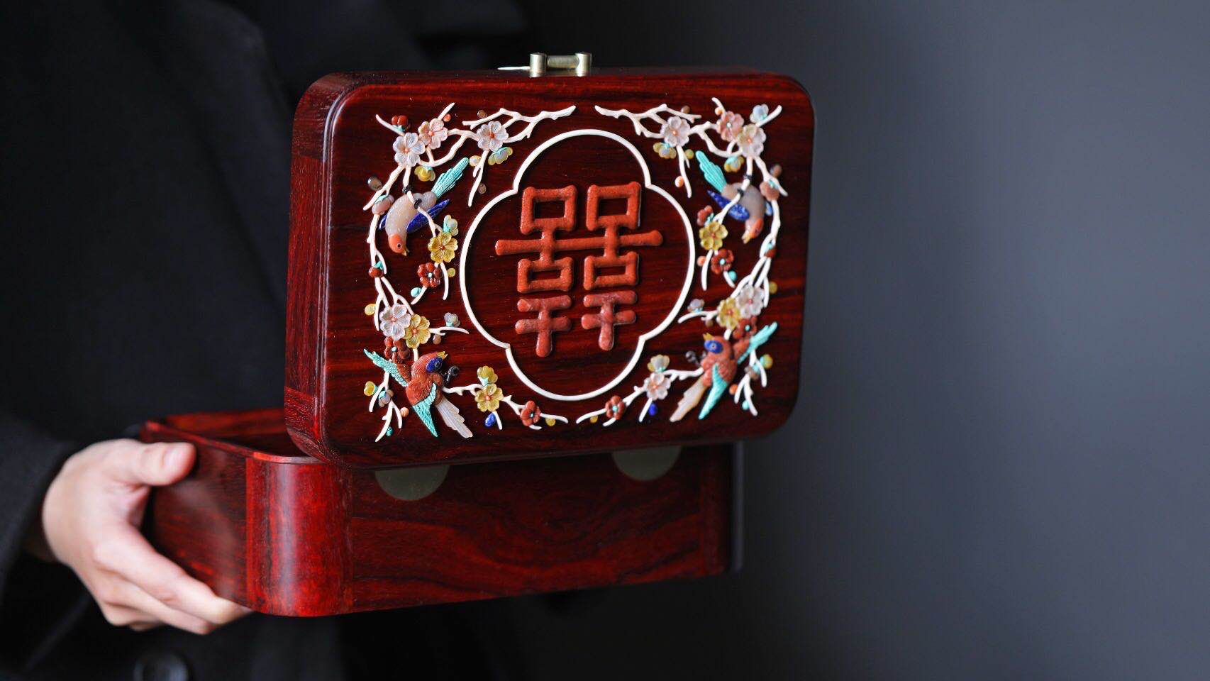 Small Leaf Purple Sandalwood Bagel Insert Pair of Doors First Accessories Box Original Solid Wood Jewelry Box Dressing Containing Box Wedding Gifts