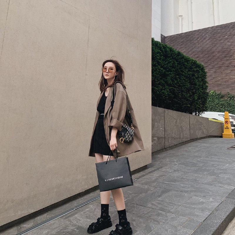 European station suit jacket women 2022 spring and autumn new chic net red lazy wind Korean version of casual coffee color suit women