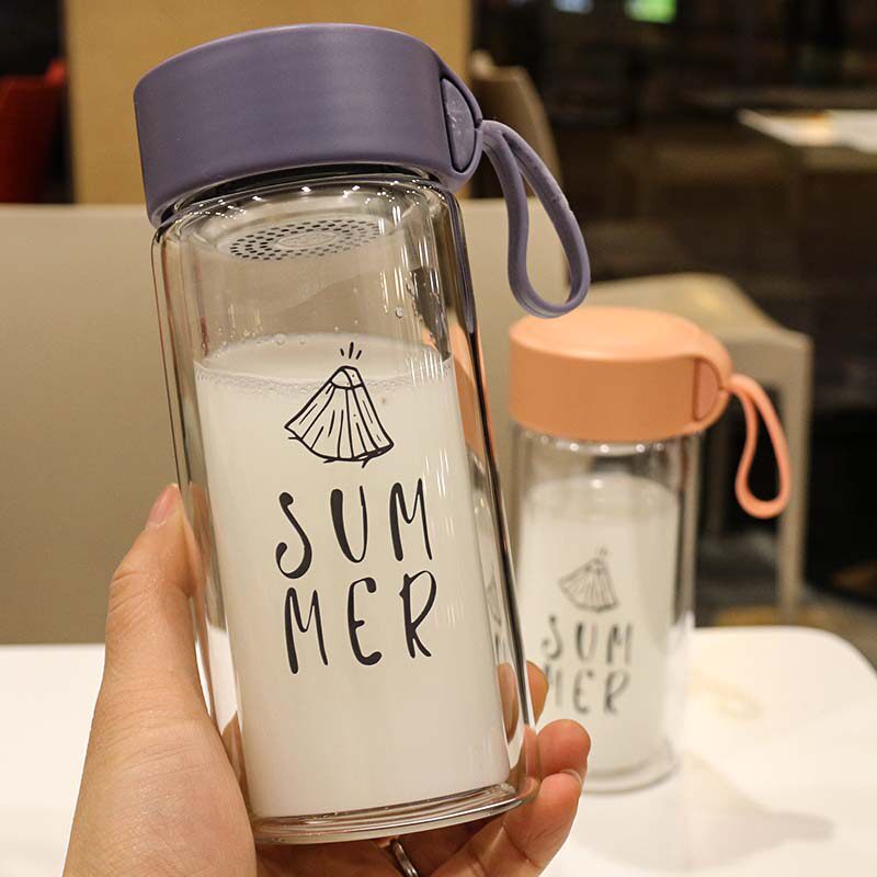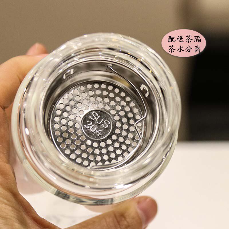 With tea compartment double layer glass cup heat resistant portable tea mug student lovers water glass creative minimalist trend accompanying cup