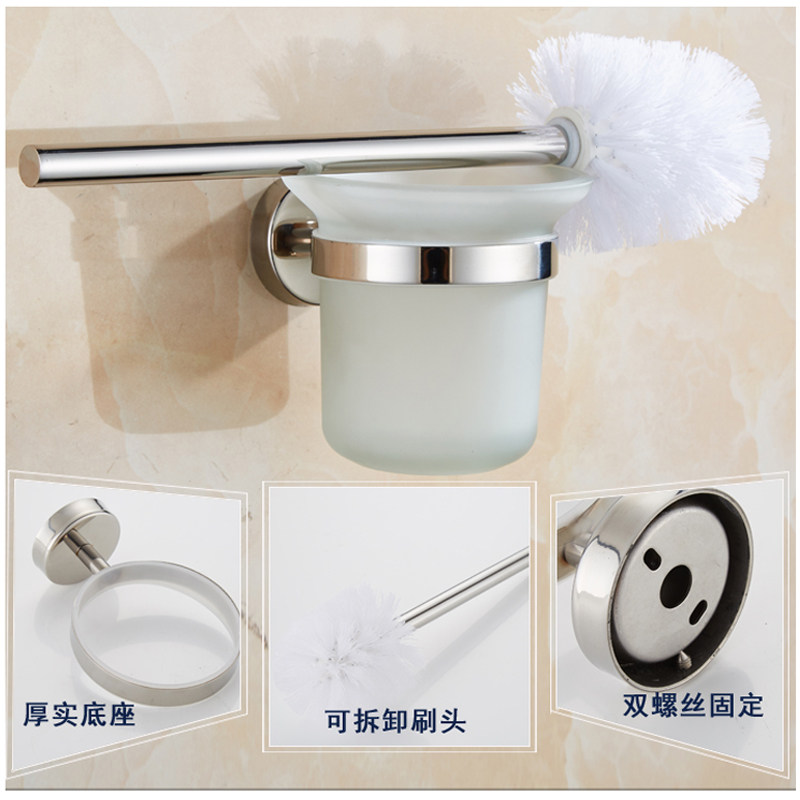 Toilet brush without punching 304 stainless steel toilet rack set makeup room toilet brush holder toilet brush cup toilet brush - Taobao