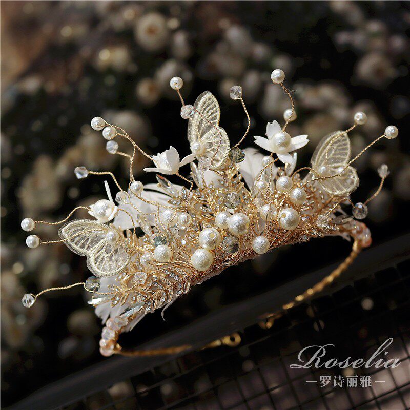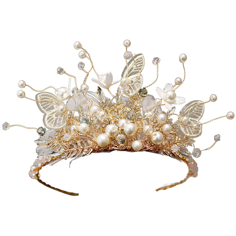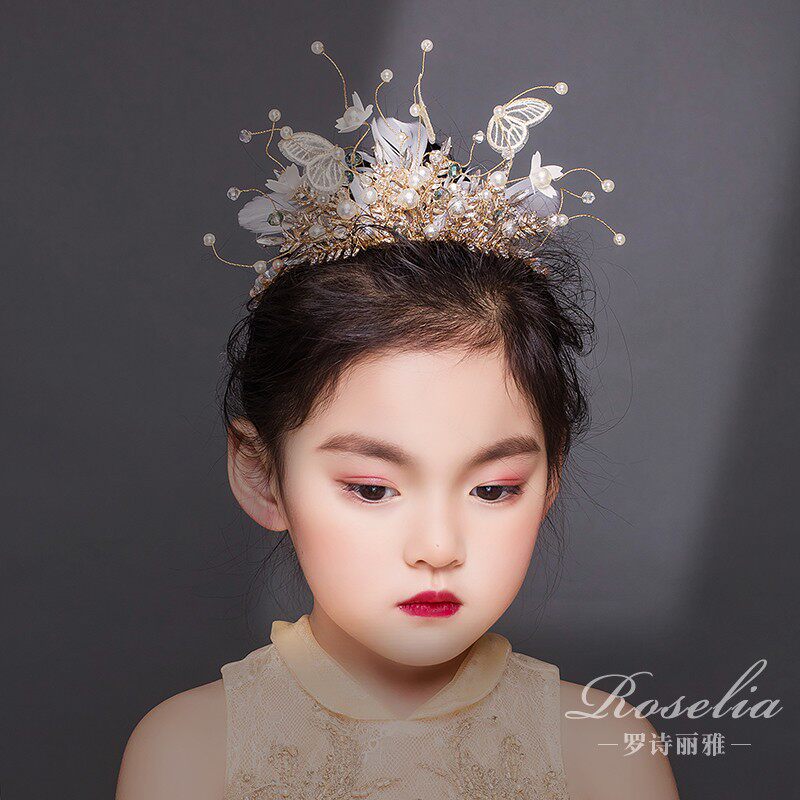 Xianmei Shiny Golden Feather Princess Crown Children's Crown Lace Butterfly Girls Show Dress Accessories