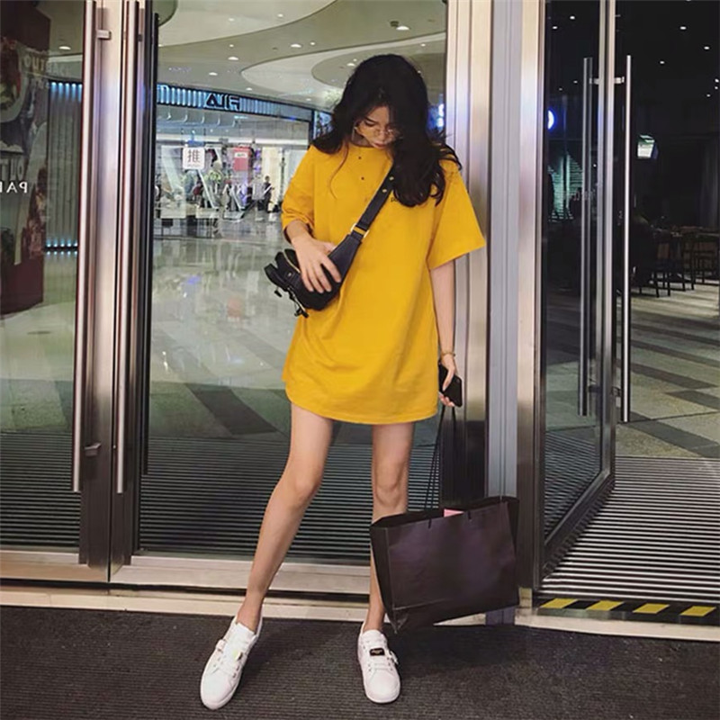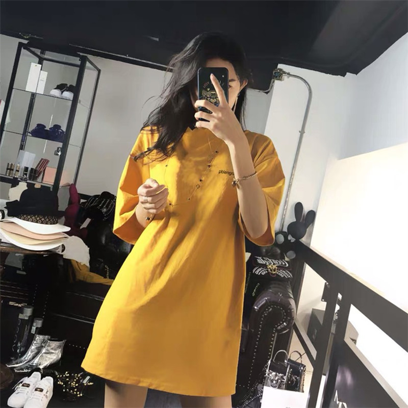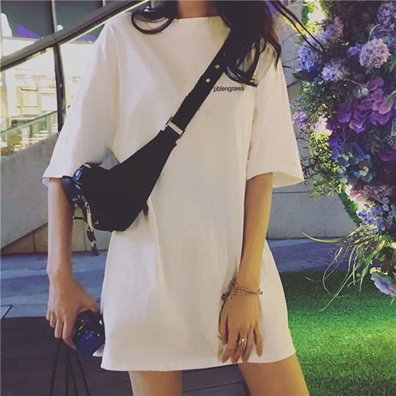 2022 Summer new pure cotton medium long version short sleeve T-shirt female 100 hitch ultra-fire loose embroidery blouses