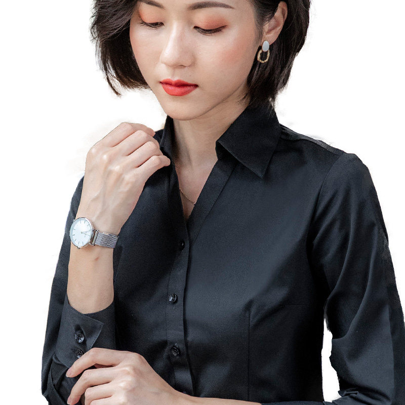 Black professional shirt female long-sleeved V-neck formal dress 2023 spring new temperament fashion tooling shirt overalls