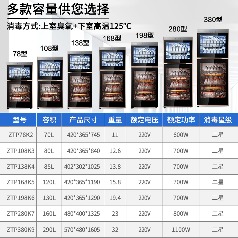 ZTP50K18 (34L single door) 1 star ZTP60K19 (50 liter single door) 1 star ZTP88K20 (60 liter single door) 1 star ZTP60K1 (60L single door) 1 star ZTP78K2 (70L double door) 2 star ZTP108K3 (80L double door) 2 star New ZTP138K4 (85L double door) 2 star ZTP168K5 (120L double door) 2 star ZTP198K6 (130L double door) 2 star ZTP280K7 (160L Double Doors) 2 Star ZTP380K9 (290L Double Doors) 2 Star ZTP85K61 (60 liters Double Doors) 2 Star ZTP125K62 (66 liters Double Doors) 2 Star ZTP145K63 (85 liters Double Doors) 2 Star New ZTP108K21 (60 liters Double Door Exterior) 2 Star New ZTP138K22 (66 liters Double Door Exterior Upgrade) 2 Star New ZTP168K23 ( 85-liter double door exterior upgrade) 2 star ZTP198K24 (120 liter double door exterior upgrade) 2 star ZTP328K26 (160 liter double door exterior upgrade) 2 star ZTP380K27 (268 liter double door appearance upgrade) 2 star ZTP468K28 (290 liter double door appearance upgrade) 2 star YTP280K12 (196L cleaning sideboard) YTP380K13 (244L cleaning sideboard)