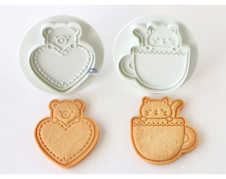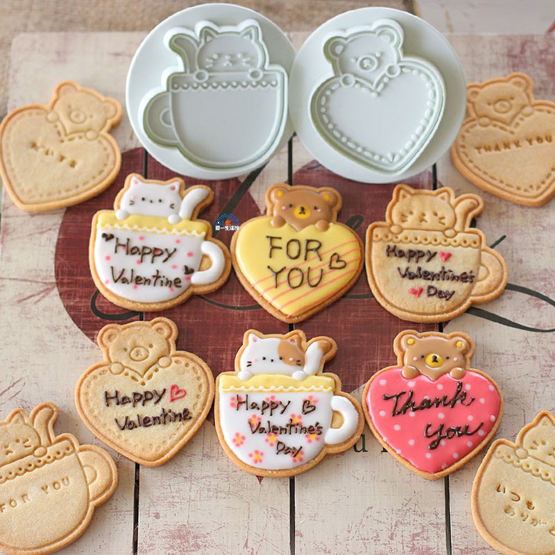 Titibear cute kitten and bear biscuit two-piece Valentine's Day themed snack mold children's snack mold