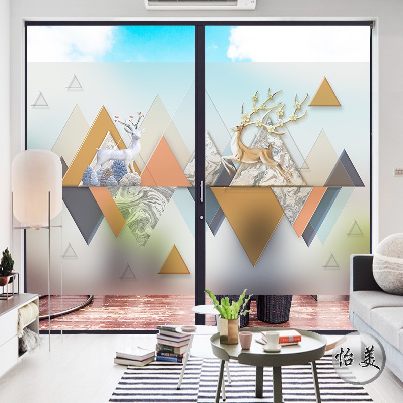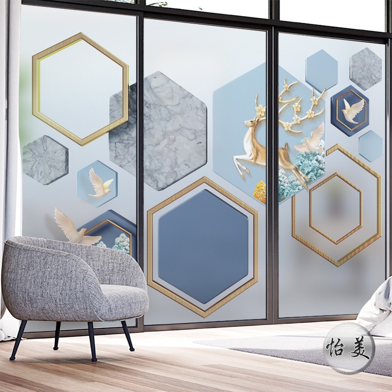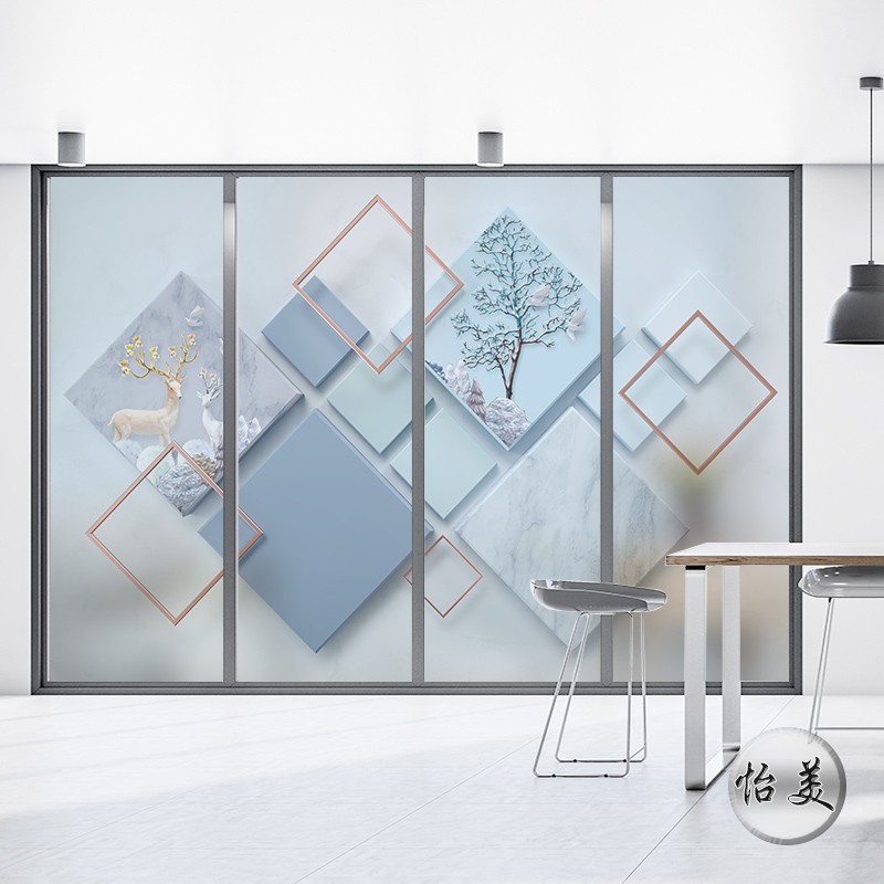 Geometric square glass film creative office company aisle partition glass wall sticker static glue-free scrub