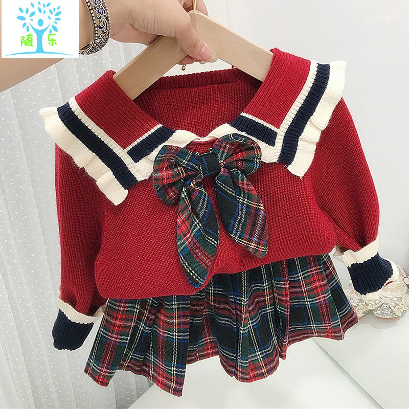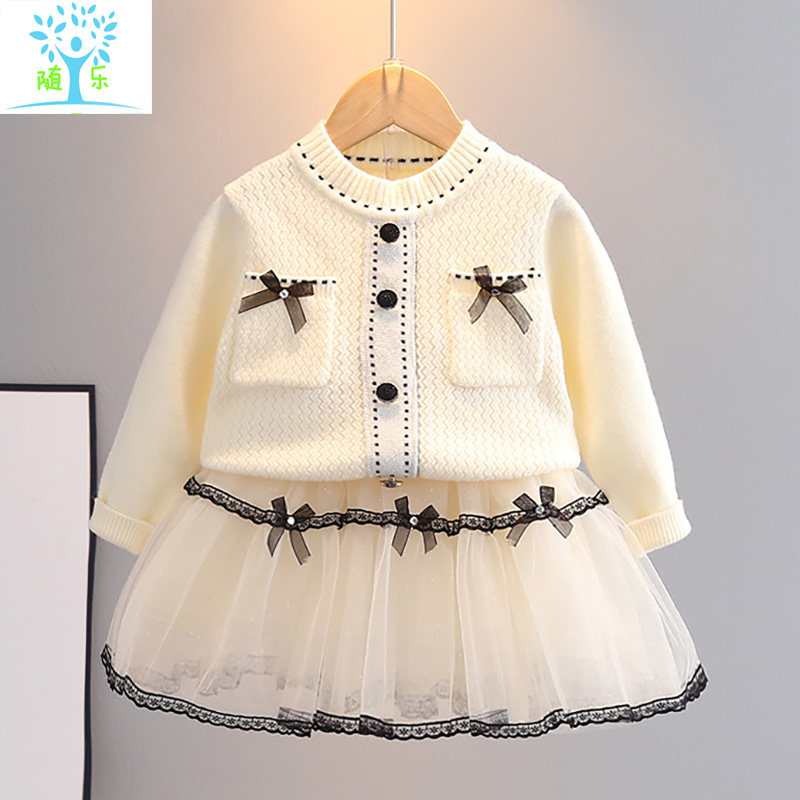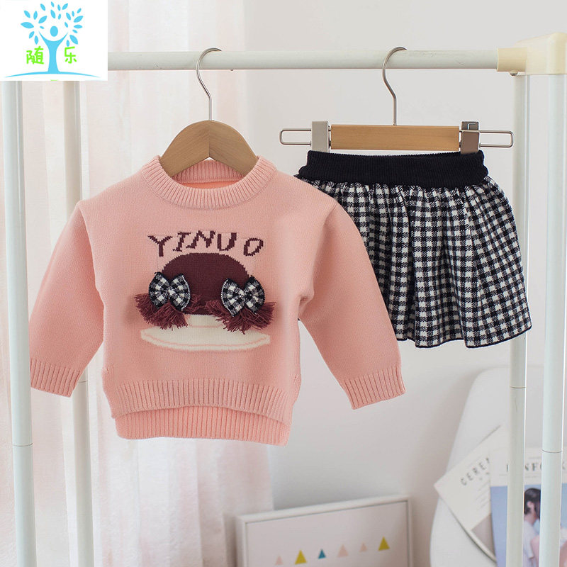 Girl's sweater suit baby spring and autumn sweater knitting skirt children two sets of girls' dress