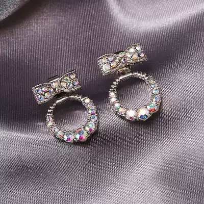 Bowknot advanced ear clip no ear hole female round face thin French ear clip earrings student short ear needle free ear hole