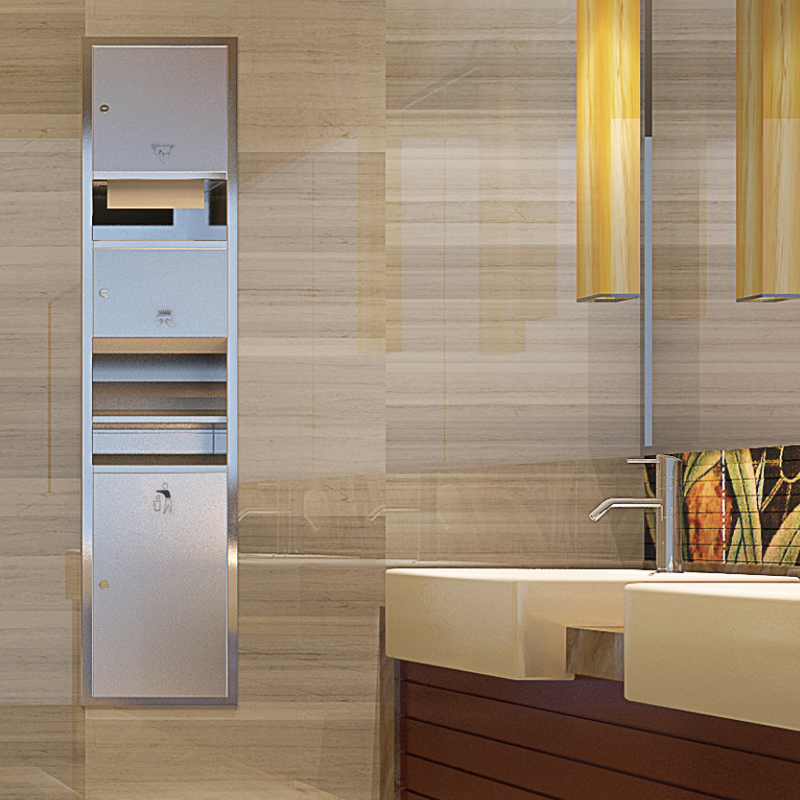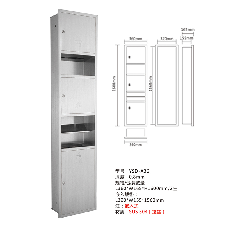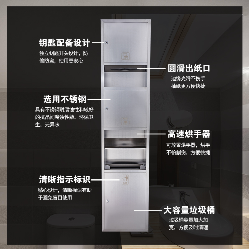 Stainless steel embedded sanitary cardboard box in wall-type garbage paper towel box Three-in-one sanitary paper box concealed sanitary paper box