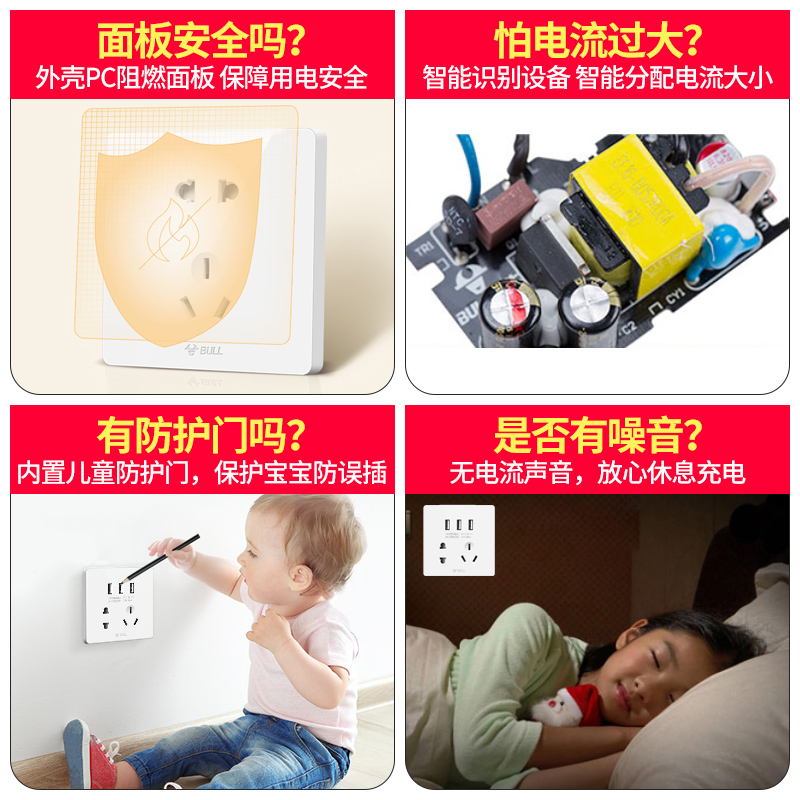 Bull five 5-hole socket with USB wall fast charging source multi-function usp panel household concealed 86 type wall plug