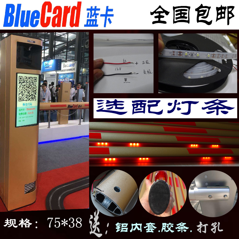 Blue card fence machine pole oval straight pole with lights parking lot fence machine railing golden 75*38 community car blocking lift pole