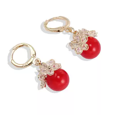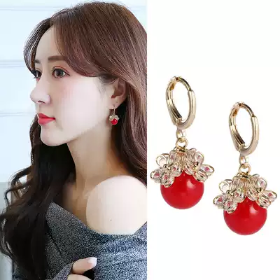 Red pearl small daisy ear needle 2021 new fashion ear needle new year ear clip no ear hole female high-grade sense earrings