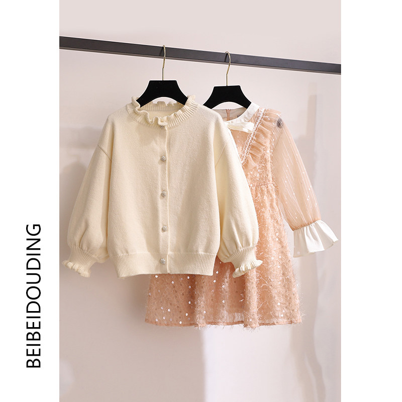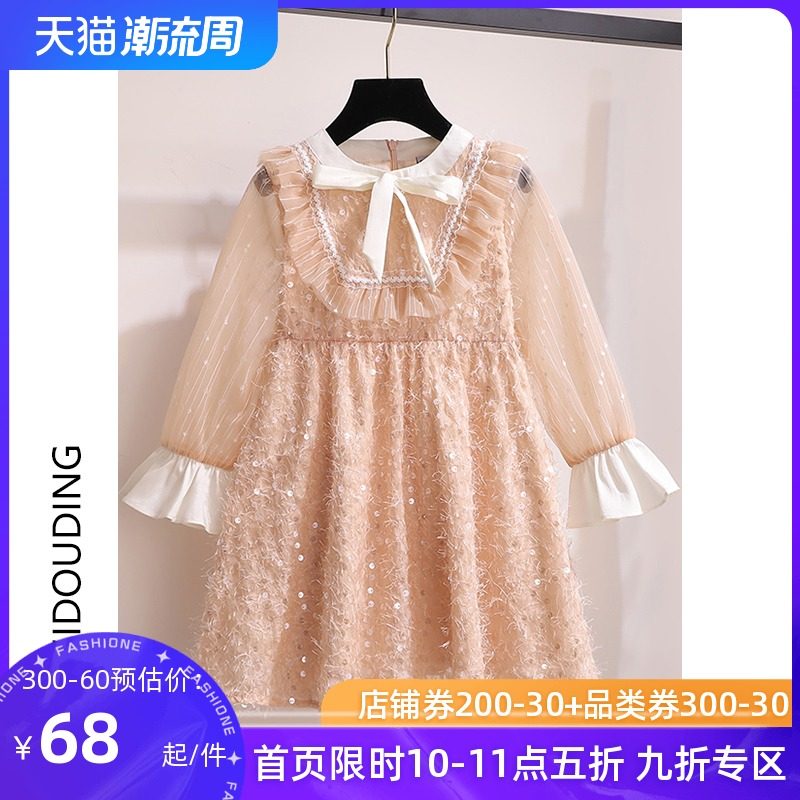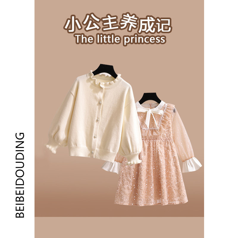 Breaking Code Straight Down Girl's Dress Dress Autumn Dress New Children's Net Red Dress Baby Princess Dress Two Sets Foreign Air-Taobao
