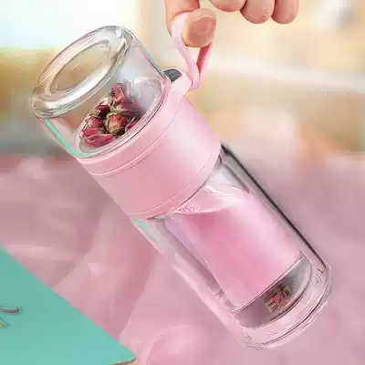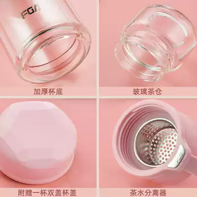 Fuguang double-layer tea cup, tea and water separation, portable accompanying flower tea, small female mini, small and cute glass water cup