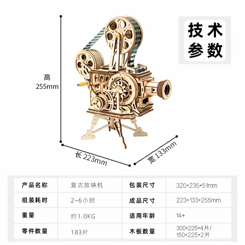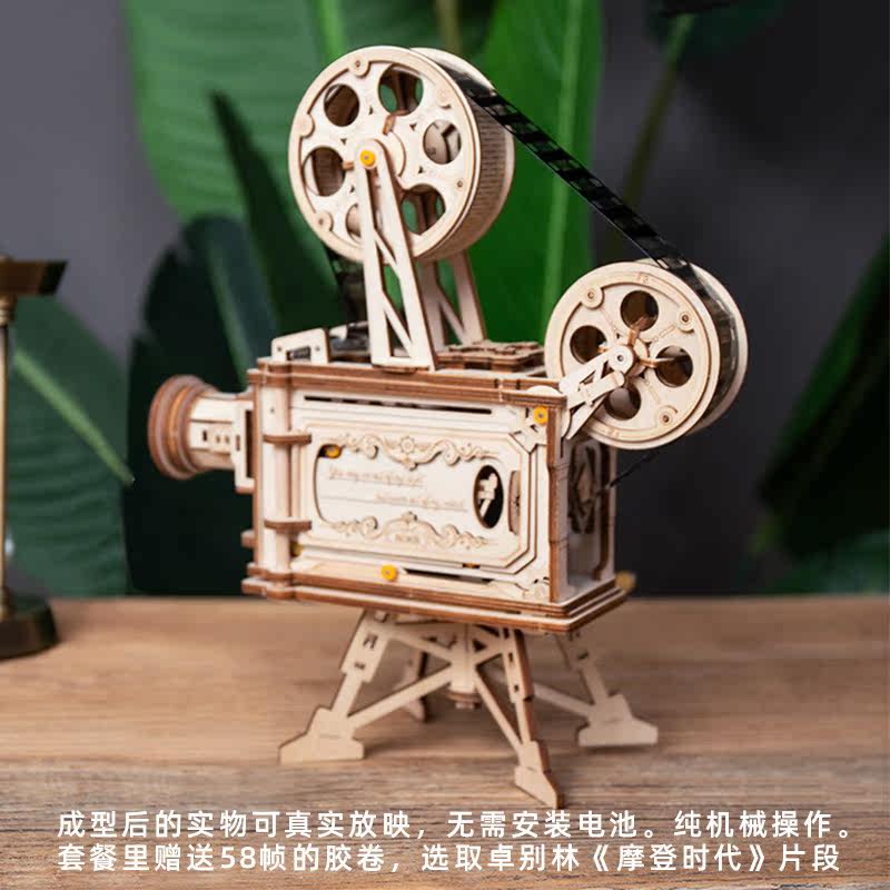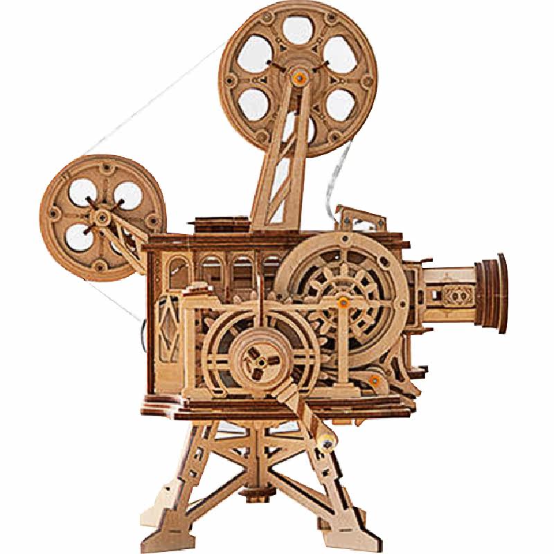 Wooden Projector Handmade Diy Assembled Mechanical Model Solid Retro Movie Projector Model Birthday Present