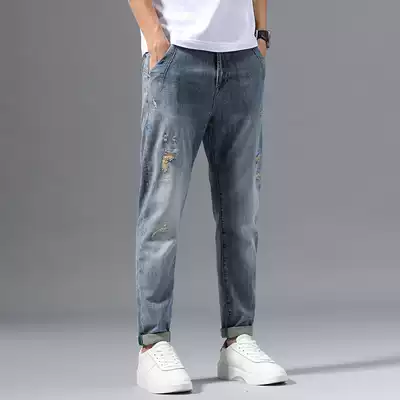 Hong Kong Tide brand high-end jeans men's summer thin straight loose summer Joker casual hole long pants