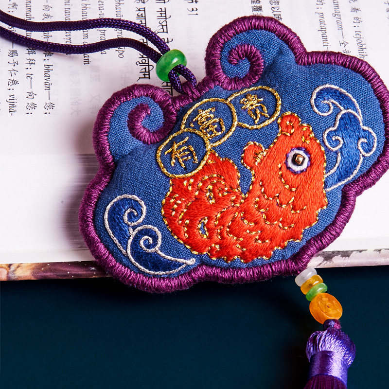 diy hand-embroidered material bag Chinese style purse safe pendant self-embroidered longevity lock sachet Hanfu accessories