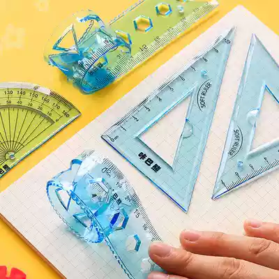 Four-piece set of soft ruler 20cm soft ruler primary school student triangle plate a set of 15cm multifunctional stationery first grade Wave Ruler super soft flexible plastic ruler transparent sleeve ruler triangle ruler scale