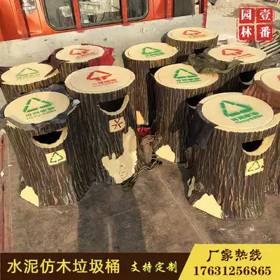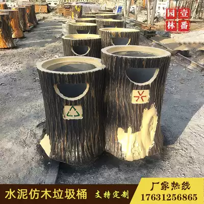 Cement imitation wood trash can Ecological bionic landscape can be equipped with inner billet trash bin fruit box outdoor classification trash can