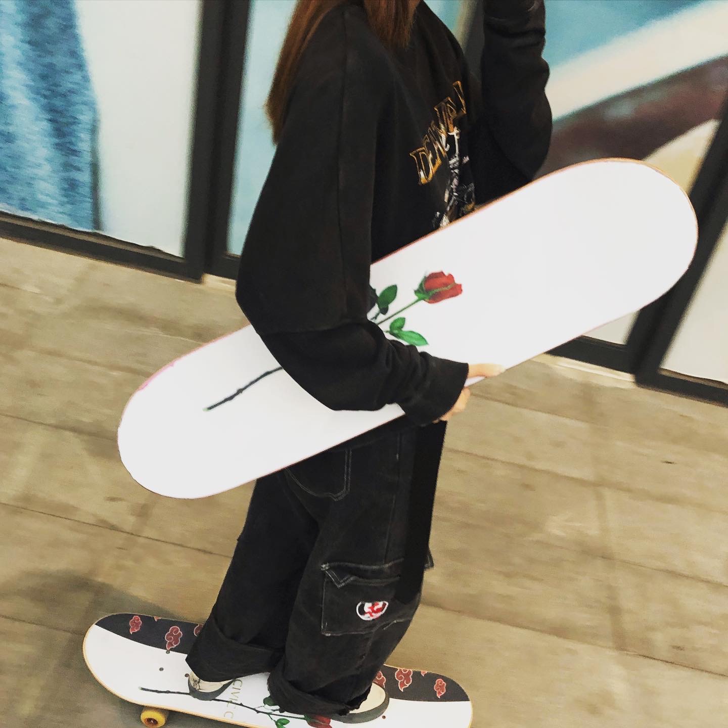 Damn DAMN rose sandpaper skateboard sandpaper ins with the same sandpaper double-up long board sandpaper white rose