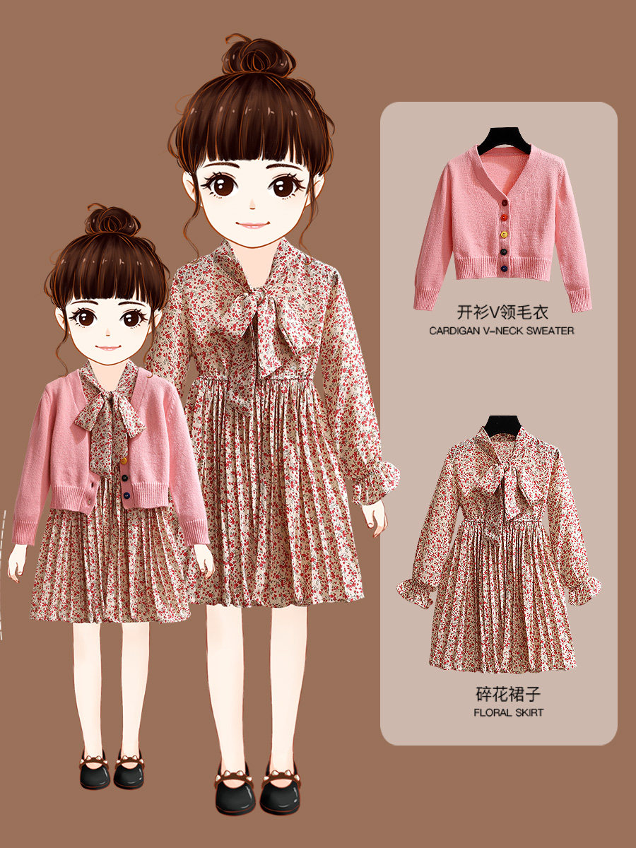 Two Six-Fold Mother and Women's Clothes Fashion Girls Dress Yangyuan Female Parents and Children's Han Costume
