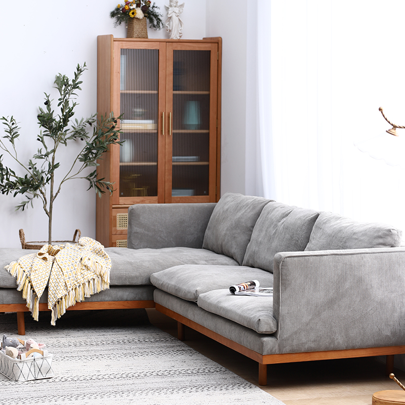 Nordic corduroy sofa living room solid wood cherry wood sofa small apartment fabric lazy sofa combination can be customized